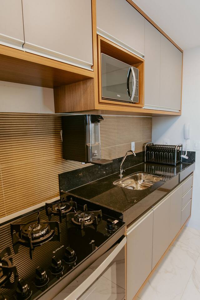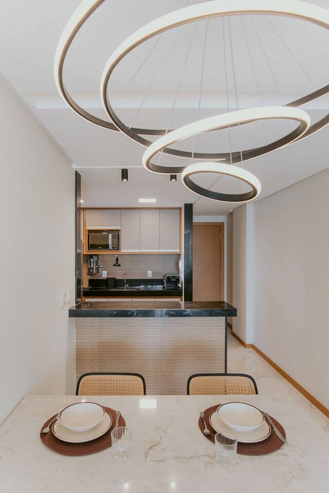 Desfrute de um sofisticado apartamento de 3 quartos (1 suíte) todo montado em andar alto, varanda com vista deslumbrante para o mar, a apenas 100m da Praia do Morro! Localizado em um condomínio novo, quartos com ar condicionado, cozinha completa, máquina de lavar . São 2 vagas de garagem e portaria 24h. Perto de restaurantes, shopping e comércio, é o lugar perfeito para relaxar e curtir suas férias com estilo e conforto!